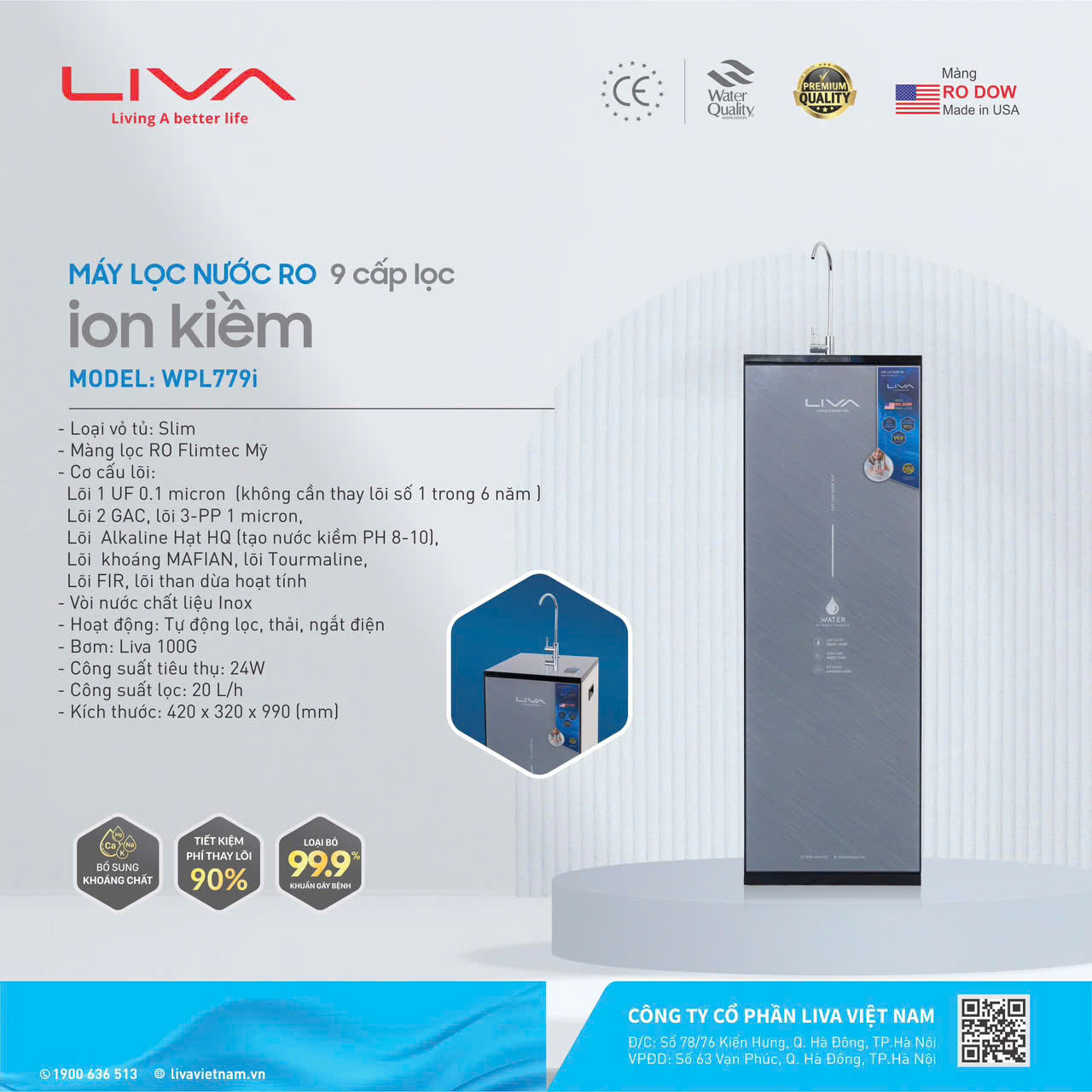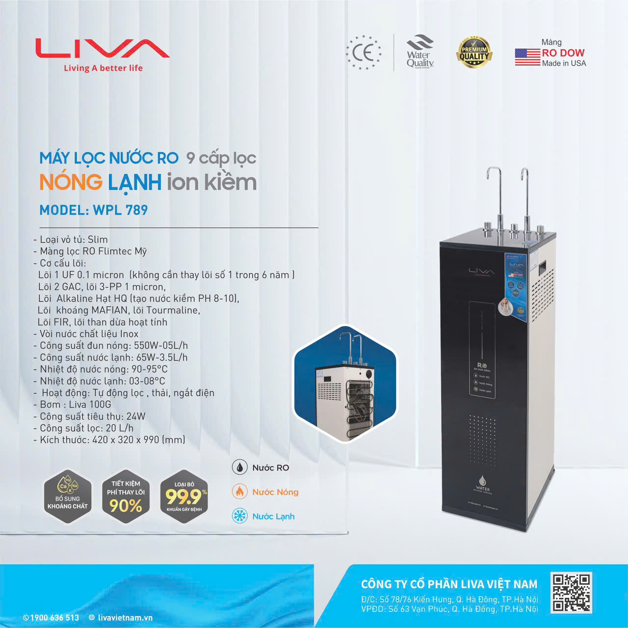 ♦ Máy lọc nước Liva WPL 789 vượt trội với thiết kế phong cách sang trọng và đơn giản. Thiết kế giấu viền, sắc sảo đến từng đường nét, tô điểm không gian.